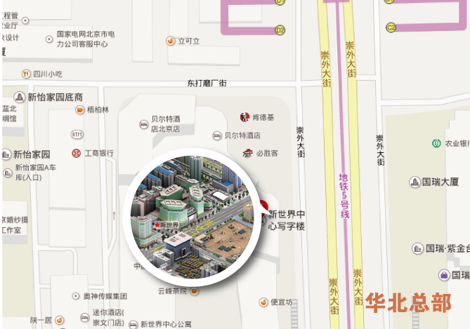 華北總部地址:     北京市崇文區崇文門外大街3號新世界A座11樓     郵編:     100062