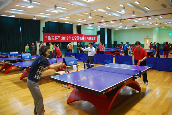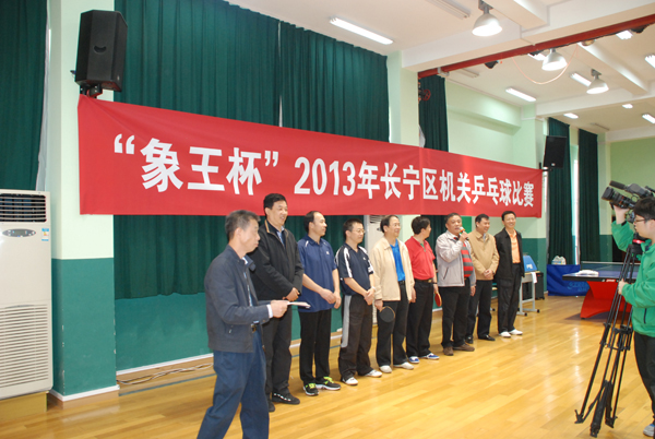 日前,2013年長寧區機關“象王杯”乒乓球賽隆重舉行。象王洗衣店連鎖為此次參賽的一百多位選手、裁判提供了獎品贊助。區人大主任朱言文、區宣傳部張部長等領導出席了球賽開幕式。象王公司黨支部書記、副總經理蔡士剛出席了開幕式并致詞。