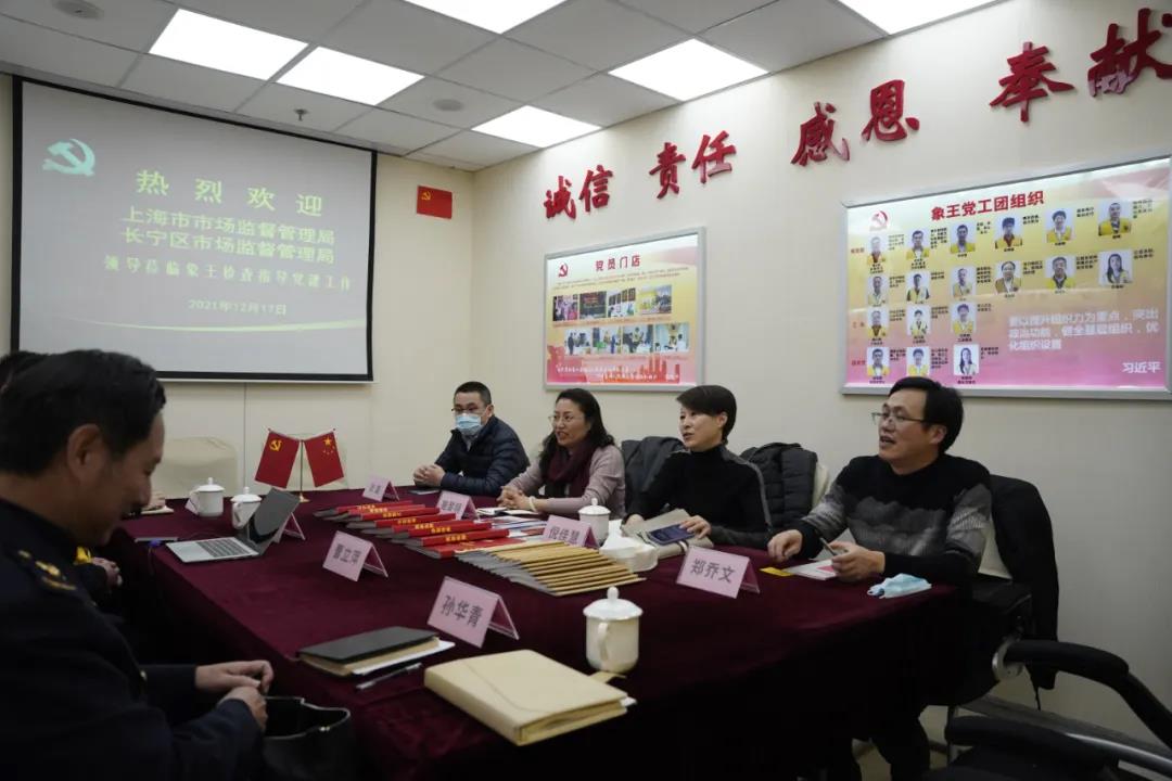 近日,上海市場監(jiān)督管理局黨群處處長施黎明、副處長張磊、鄭喬文以及長寧市場監(jiān)督管理局局長、黨組書記倪佳慧,黨群科長李晶、區(qū)個體民營協(xié)會聯(lián)合黨支部書記孫華青等一行領(lǐng)導(dǎo)到上海象王洗衣有限公司黨支部檢查指導(dǎo)非公企業(yè)的黨建工作。