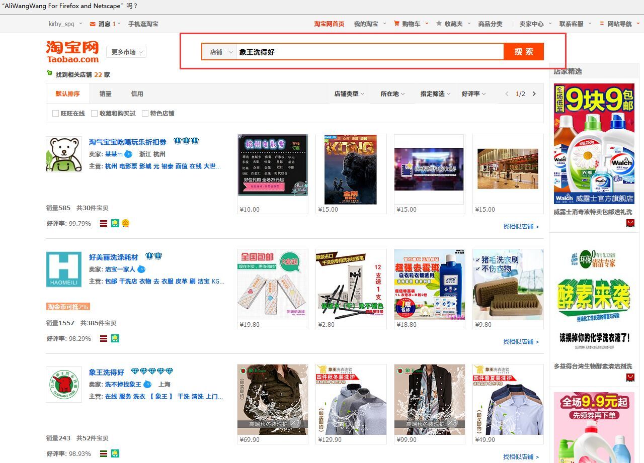 2)選擇進入象王官方淘寶店(搜索淘寶企業店鋪 “象王洗得好”),進行在線下單。部分地區享受免費收送服務。